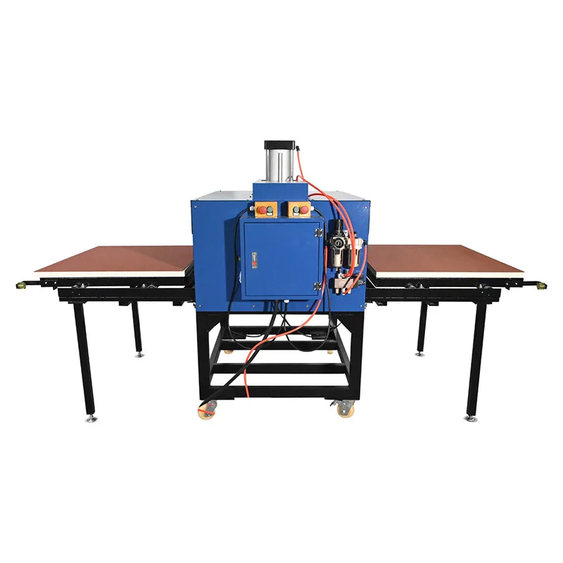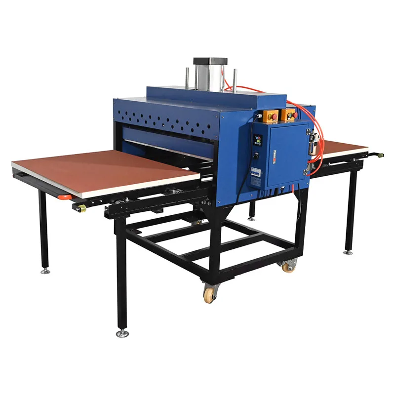 The high-speed, industrial-grade large format pneumatic double station heat press machine is designed for T-shirts, garments, and more. It can also be used for hair-planting heat transfer and foaming printing process heat treatment, especially suitable for advertising, gifts, publicity, and other activities.